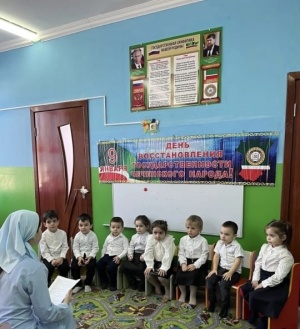 09.01.202409.01.2024 года во всех возрастных группах были проведены беседы, приуроченные ко Дню восстановления государственности Чеченского народа. Цель беседы: Ознакомить с историей чеченского народа.