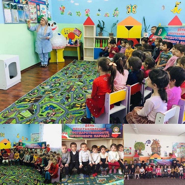 09.01.19г. в МБДОУ «Детский сад N2 «Улыбка» во всех возрастных группах были проведены беседы ко Дню восстановления государственности чеченского народа».